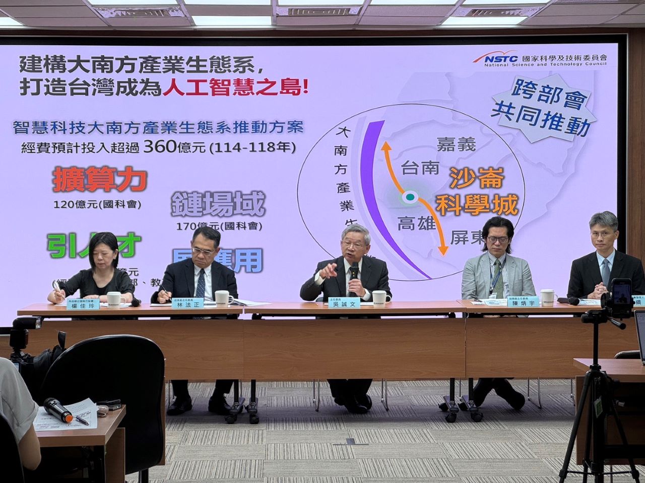 國科會為凝聚各單位對於我國未來科技與產業發展之共識,已召開跨部會研商會議,並提出「智慧科技大南方產業生態系推動方案」陳報行政院,後續將以跨中央與地方、跨部會、跨產學研的全新思維,構建大南方產業生態系,提升臺灣AI技術研發能力,最終實現「均衡臺灣」、「韌性臺灣」、「健康臺灣」的目標。