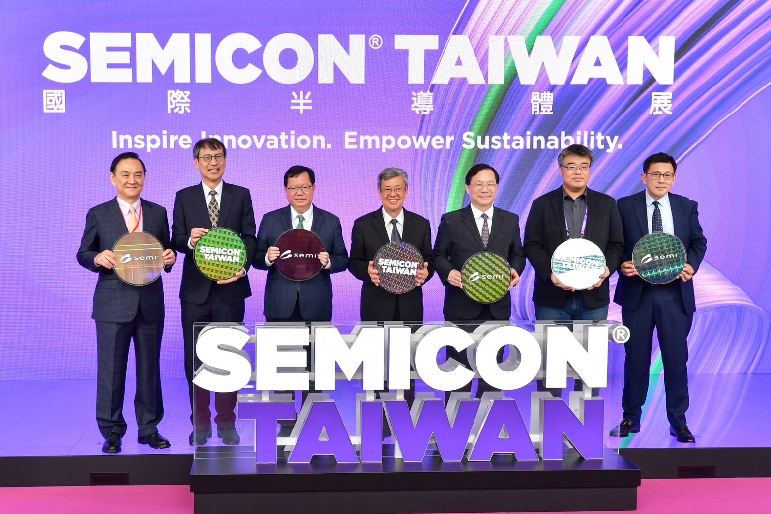 致詞結束後,陳院長與鄭文燦副院長、總統府秘書長林佳龍、行政院發言人林子倫、經濟部次長林全能、數位發展部次長李懷仁、美國在台協會(AIT)處長孫曉雅、SEMI全球總裁暨執行長Ajit Manocha、全球董事會主席Mary Puma等人,一同按下儀式臺柱啟動按鈕,臺柱上方圓盤隨即旋轉一周,完成開幕儀式。隨後,院長前往參觀台灣西克股份有限公司、工研院資訊與通訊研究所、攝陽企業股份有限公司、鈺祥企業股份有限公司等展區,了解半導體等高科技技術及設備,最後並在「SEMICON TAIWAN」背板前合影留念。
