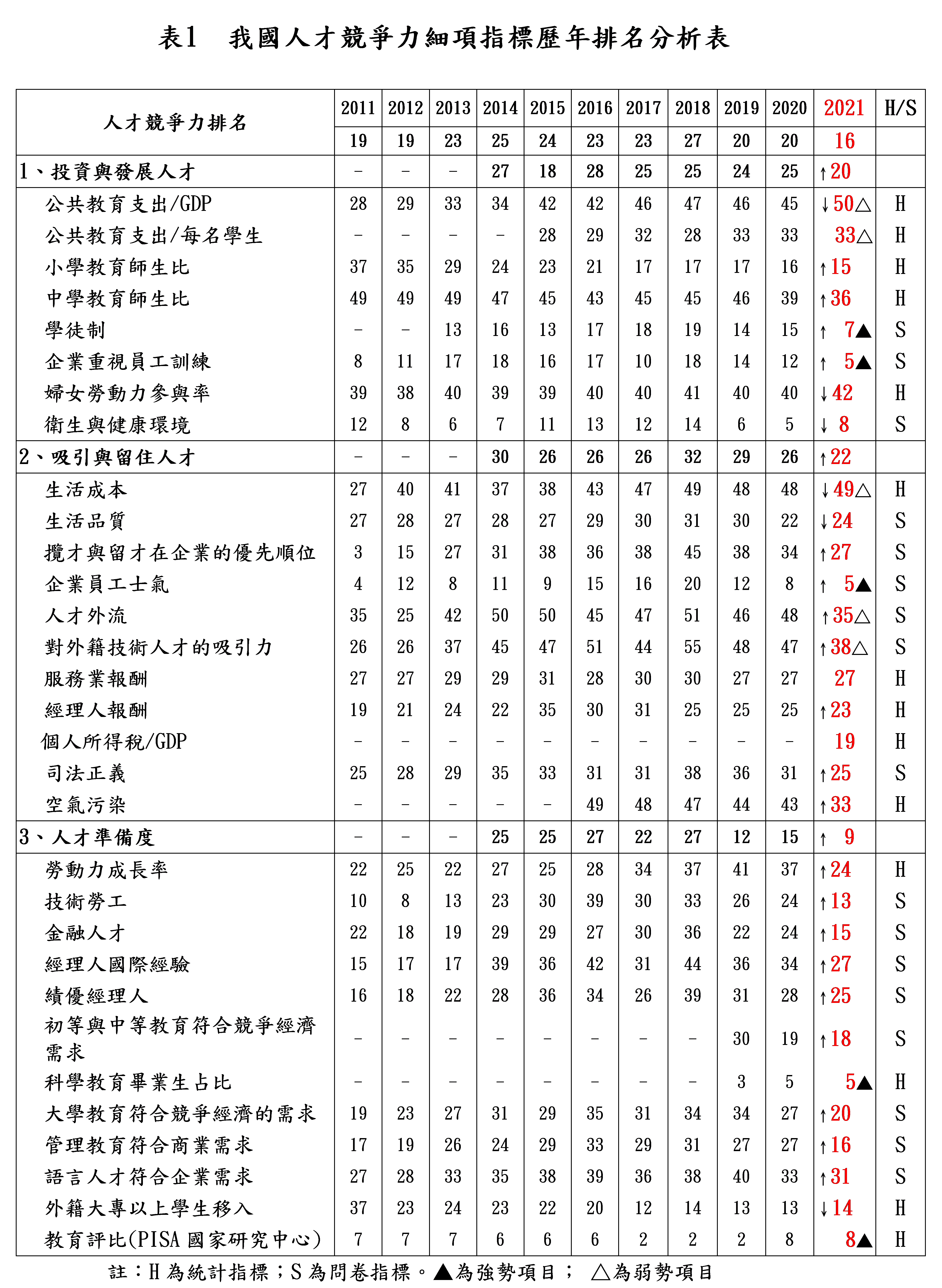 一、「投資與發展人才」全球排名第20名(較去年進步5名)