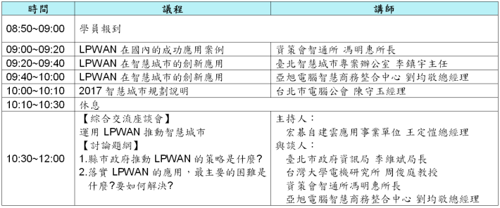 由於LPWAN的廣泛布建,將帶動大量IoT的應用,並加快智慧城市推動的腳步,為此特規劃辦理系列論壇,透過產學共同探討,期待激發更多不同創意應用發展。